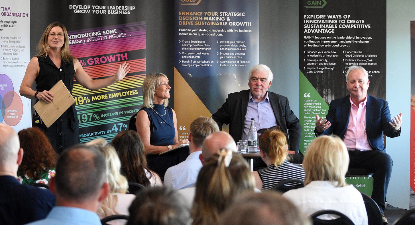 If you wanted hard evidence of the impact of QuoLux and its leadership programmes on businesses it was on a banner stage left.