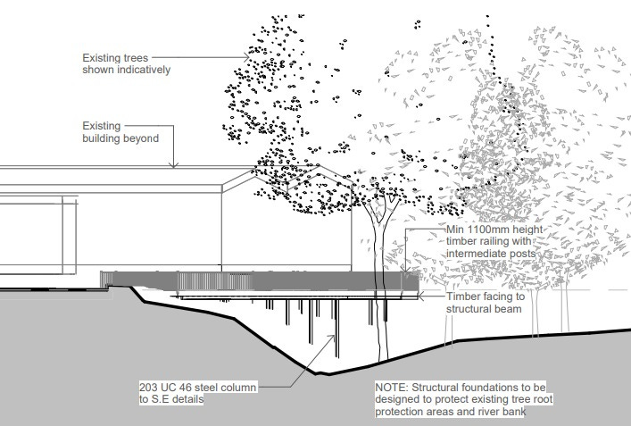 This new terraced area would be built in timber on a partly cantilevered structure with steel support beams beneath, and a timber balustrade, according to the plans.