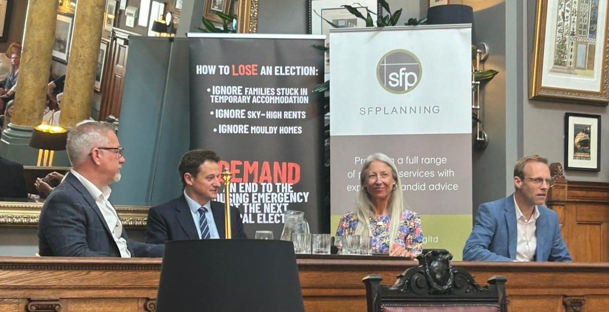 The debate that followed was summed up by panel member Kate Davies, CBE, of Buena Ltd, as “a great discussion across politics, the housing emergency, social housing, the PRS (private rented sector), land and planning issues, net zero and air source heat pumps, nimbys and the green belt.”