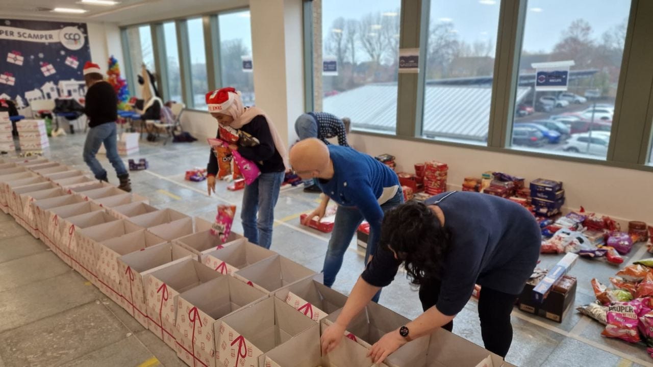 Businesses from across the county come together to create something incredible – the collection and delivery of thousands of boxes of gifts for children.