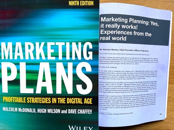 In the new ninth edition of “Marketing Plans: Profitable Strategies in the Digital Age” by Professor Malcolm McDonald, QuoLux™ CEO Dr. Stewart Barnes contributed the chapter “Marketing Planning: Yes, it really works! Experiences from the real world.” This updated edition is essential reading for leaders looking to boost sales and profit in 2025.